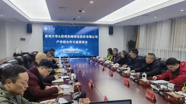 2024年2月29日,在黔南州科技局领导的大力助推下,东峰锑业与贵州大学产学研合作交流座谈会在贵州大学贤正楼顺利召开。东峰锑业股份有限公司总经理覃事敦与贵州大学科学技术研究院院长吴复忠教授等双方代表就如何深化合作、共同推动产学研一体化发展进行了深入交流。