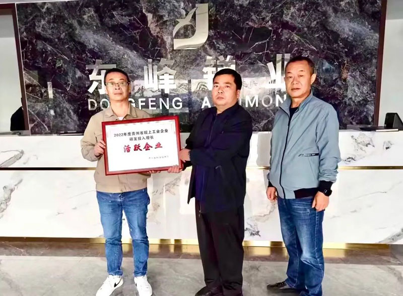 11月6日,黔南州科学技术局何书杰副局长、科技规划和创新发展科科长陈宾以及独山县发展和改革局科技综合科负责人罗红一行来到贵州东峰锑业股份有限公司,为东峰锑业颁发了“2022年度贵州省规上工业企业研发投入增长活跃企业”荣誉奖牌,充分肯定了东峰锑业在科技创新和研发投入方面所开展的工作。